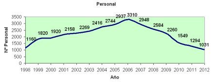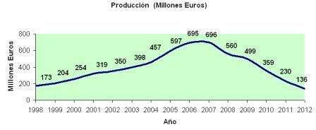 En esas memorias se pueden consultar los datos de producción (millones de euros) y empleados en el periódo 1998-2012: