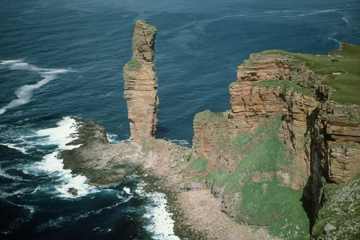 Es una pila (aguja) rocosa en la isla de Hoy, perteneciente al archipiélago de Orkney, al norte de Escocia. Es una formación rocosa de arenisca roja, con 137m de altura y famosa entre los escaladores. Le quedan dos telediarios.