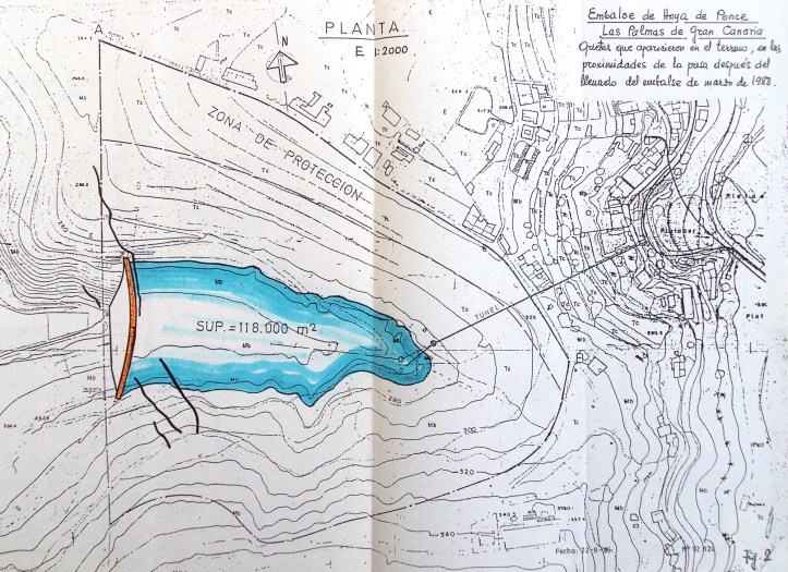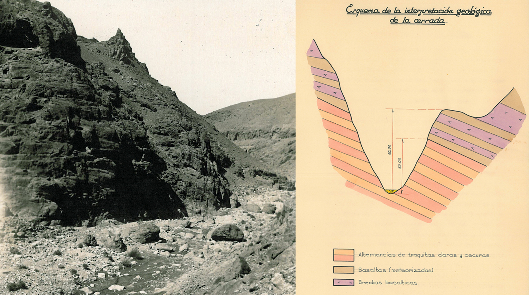 En la década de 1940 se diseñaron unas 60 grandes presas en la geografía insular. A pesar de los primeros informes realizados por los geólogos, los ingenieros continuaron efectuando los reconocimientos oculares de los terrenos para cerrar los barrancos, aunque desde 1938 se disponía del estudio de conjunto de la estructura geológica de Gran Canaria, efectuado minuciosamente por Simón Benítez Padilla y que incluía el primer Mapa Geológico de Gran Canaria a E 1:100.000.