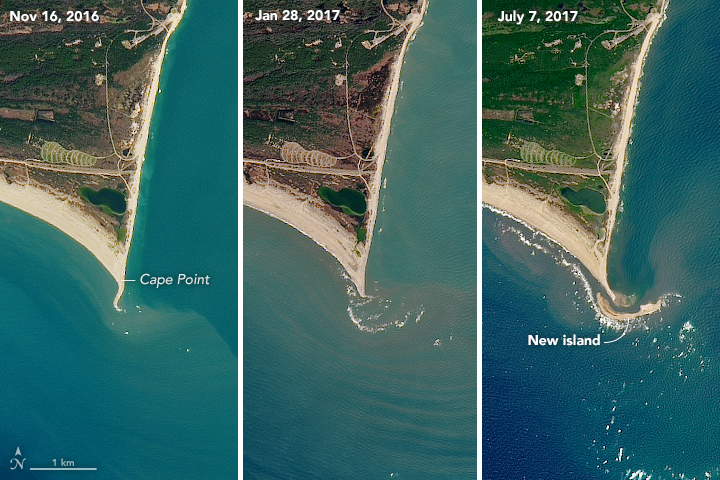 En zonas planas y con suave pendiente hacia el mar se depositan las islas barrera, crestas de arena paralelas a la costa, con zonas elevadas o dunas de arena de hasta 10m. Entre esta isla y el continente queda una laguna de aguas tranquilas.