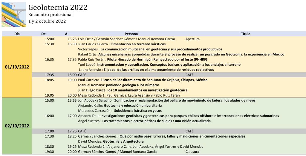 Durante el fin de semana del 1 y 2 de Octubre de 2022 hemos celebrado el primer encuentro virtual sobre geotecnia y geología. Los organizadores hemos sido Manuel Romana (@MRGdeviaje) y yo, Germán Sánchez (@ingeododo).