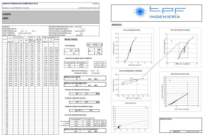 ¿Qué aspecto tiene un parte de un ensayo presiométrico?