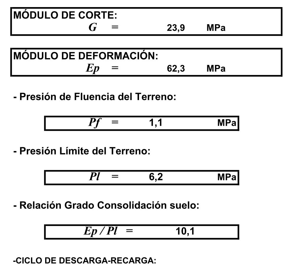 | BC – Fase elástica | Respuesta casi lineal: pendiente ≈ módulo elástico in situ. | Cálculo del módulo presiométrico Ep (≈ Módulo de Young). |