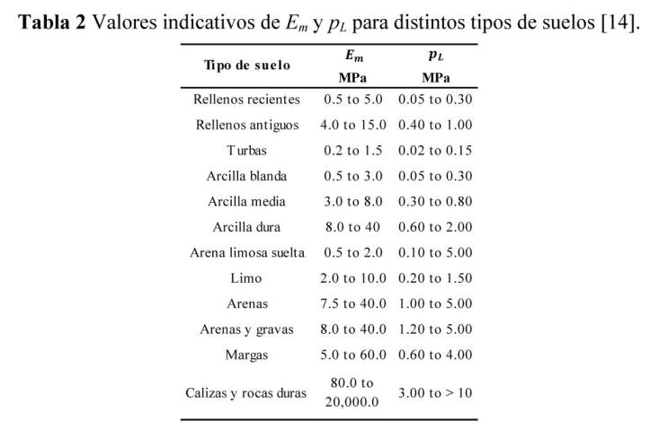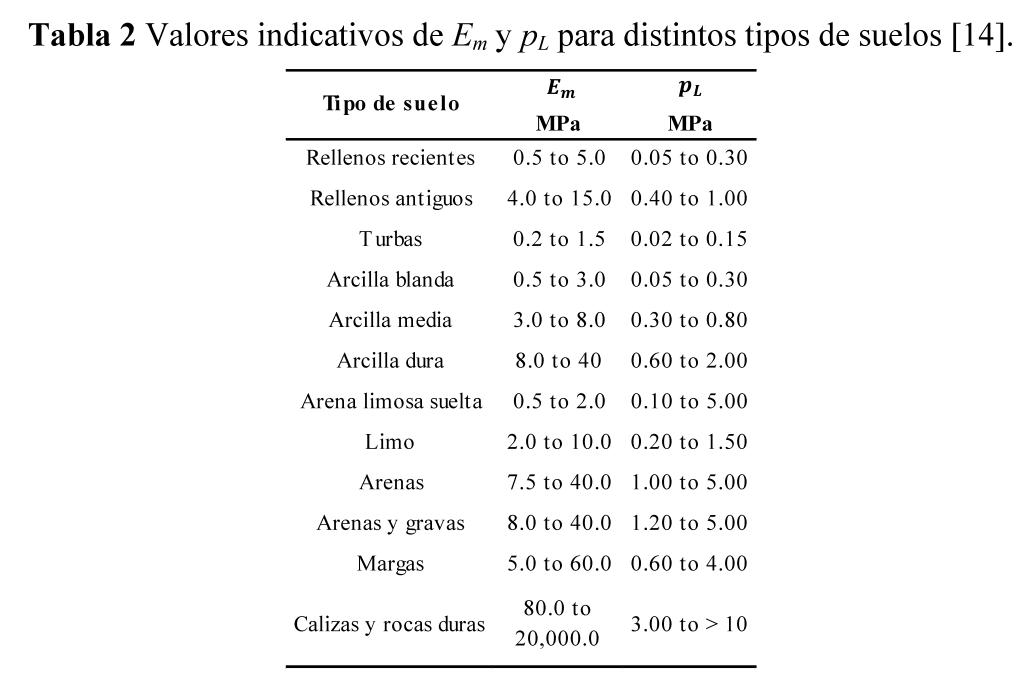 En la literatura tenemos orientación sobre los valores típicos de Em y Pl en diferentes suelos y rocas ( Cuidado con las correlaciones que las carga el diablo):