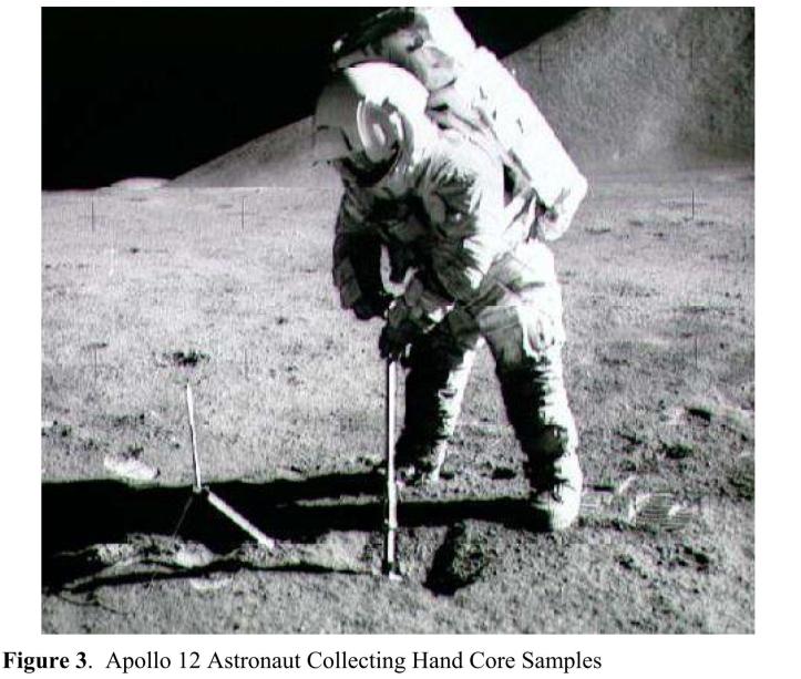 El gran salto llegó con las misiones de la NASA Surveyor 1, 3, 5, 6 y 7 que aportaron los primeros ensayos sistemáticos del terreno. Especialmente importante fue la Surveyor 3, con el sistema desarrollado bajo la dirección de Ronald F. Scott. Este equipo realizó: excavaciones mediante zanjas ensayos de carga (tipo placa), pruebas de impacto y observación de deformaciones. Además: se analizaron las huellas de las patas del módulo y se midieron fuerzas de aterrizaje con instrumentación. Con todo esto se pudo estimar: resistencia al corte, capacidad portante y densidad del regolito.