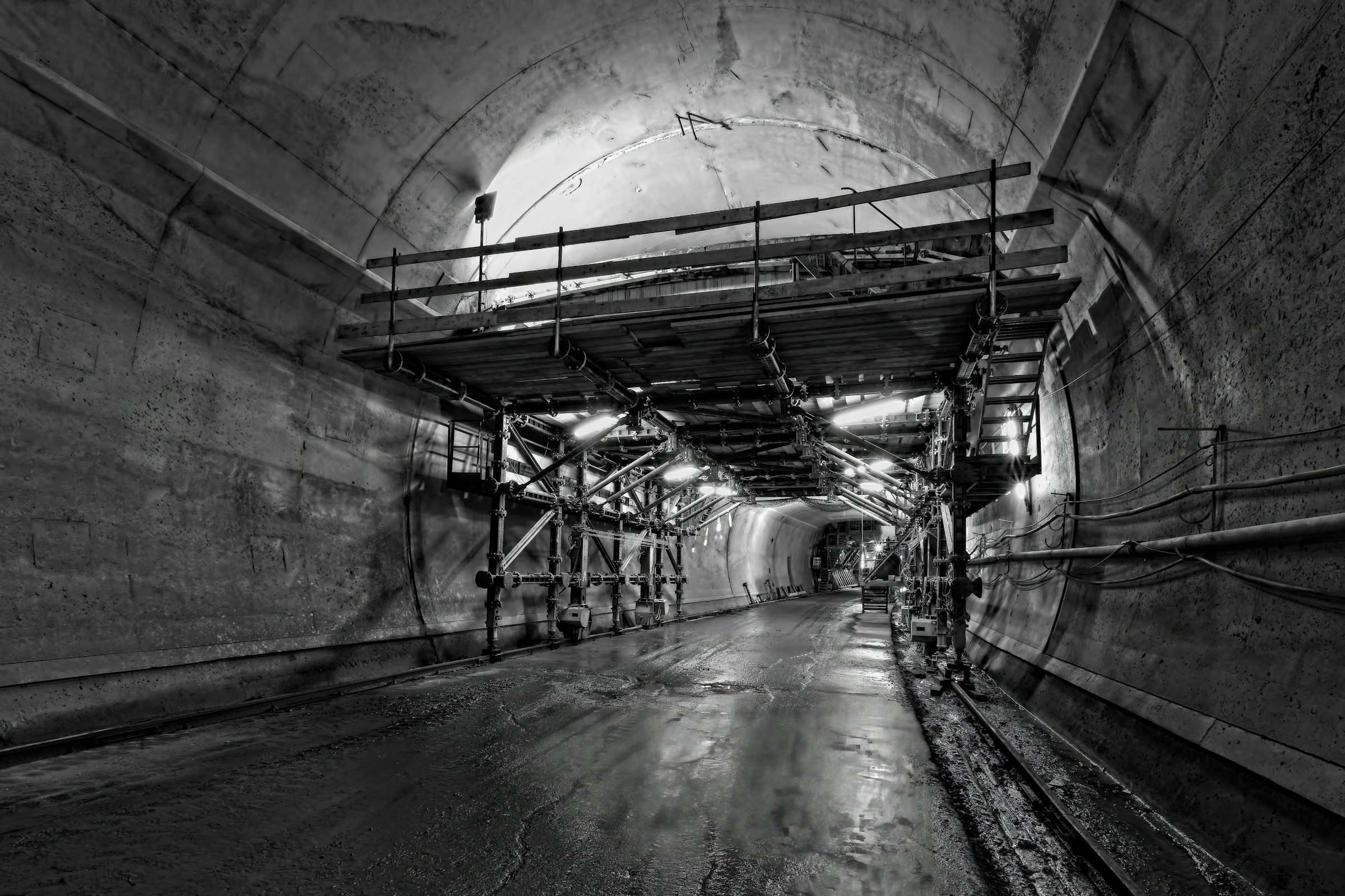 A partir de ese conocimiento, se elabora un modelo geotécnico del terreno, donde se representa la disposición de los materiales, sus propiedades y las condiciones de agua y tensiones. Este modelo es la base para elegir el método constructivo y el tipo de sostenimiento. En macizos rocosos competentes, la excavación puede sostenerse con bulones, gunita y cerchas metálicas, según el enfoque del Nuevo Método Austriaco (NATM), que se basa en dejar que el terreno participe activamente en el sostenimiento mediante deformaciones controladas. En suelos blandos el diseño requiere sistemas más rígidos: escudos cerrados, tuneladoras presurizadas, pantallas de contención o congelación del terreno. Cada terreno exige su propio equilibrio entre fuerza y flexibilidad.