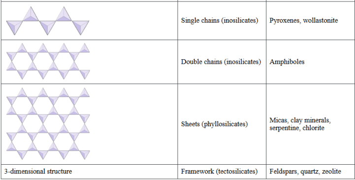 Tabla 2.6 Configuraciones de los minerales silicatos.